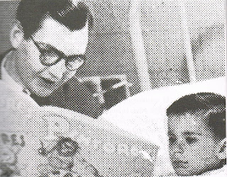 Aquí, en una desconocida y rudimentaria foto de juventud en la que acompaña la lectura de un niño enfermo: